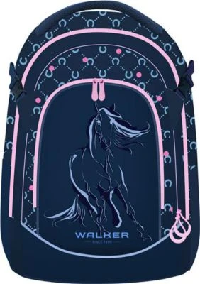 Walker Schulrucksack Fame 2.0 Lucky Horse; Erweiterte Rückenpolsterung; Zusätzliche Polsterung der Schulterriemen für zusätzlichen Komfort; Kompressionsriemen für verbesserte Lastenverteilung; Modernisierte Form des Tragegriffs; Elastische, flach anliegende Seitentaschen für eine schmale Optik; Front mit Velvet Printing und Glitter Applikation Polyester